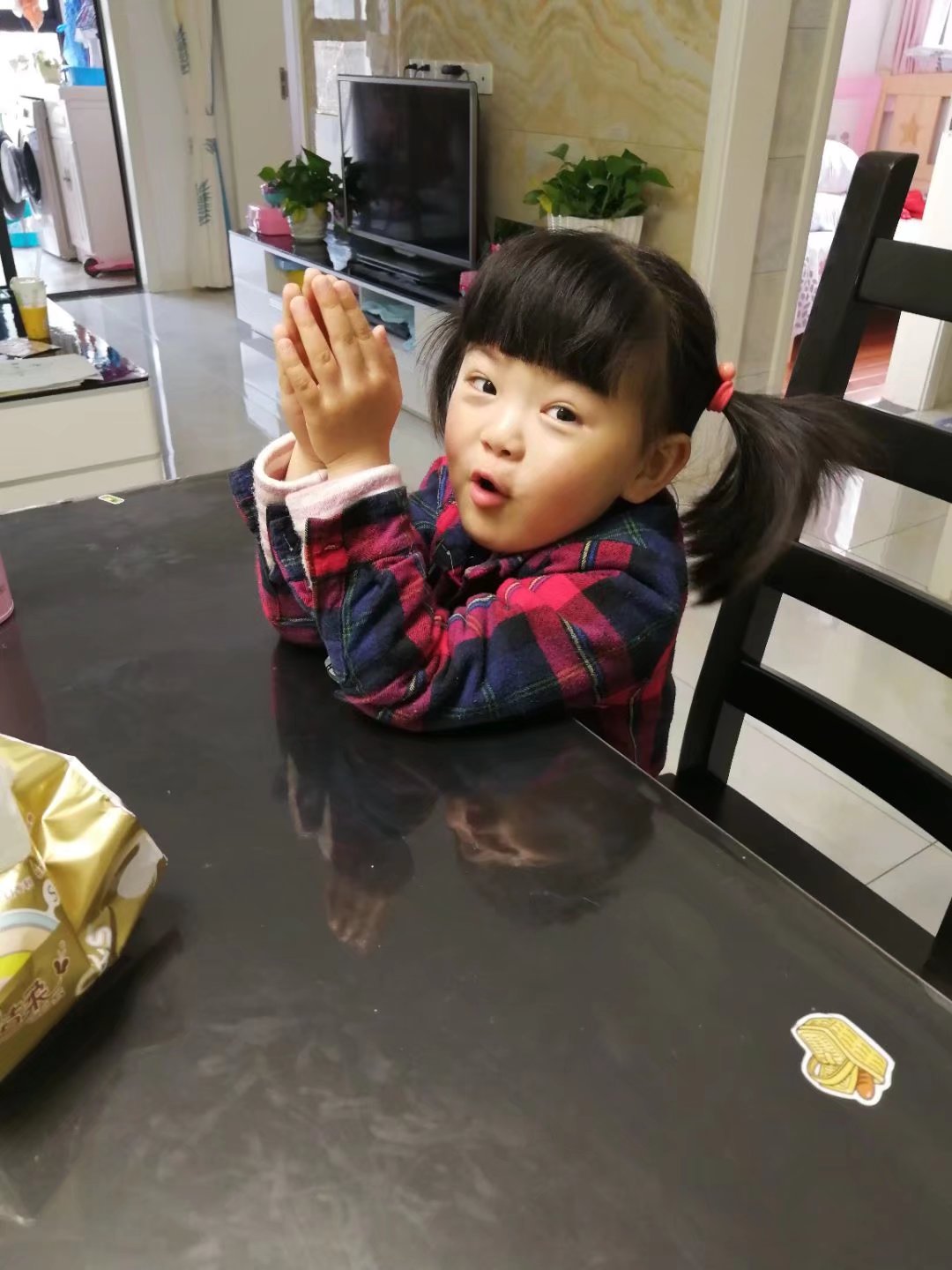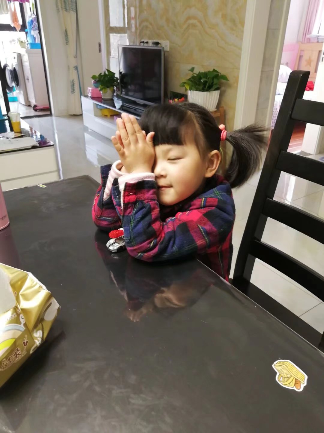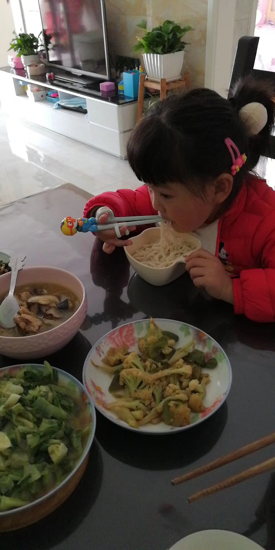 会自己用筷子,还可以给我夹菜