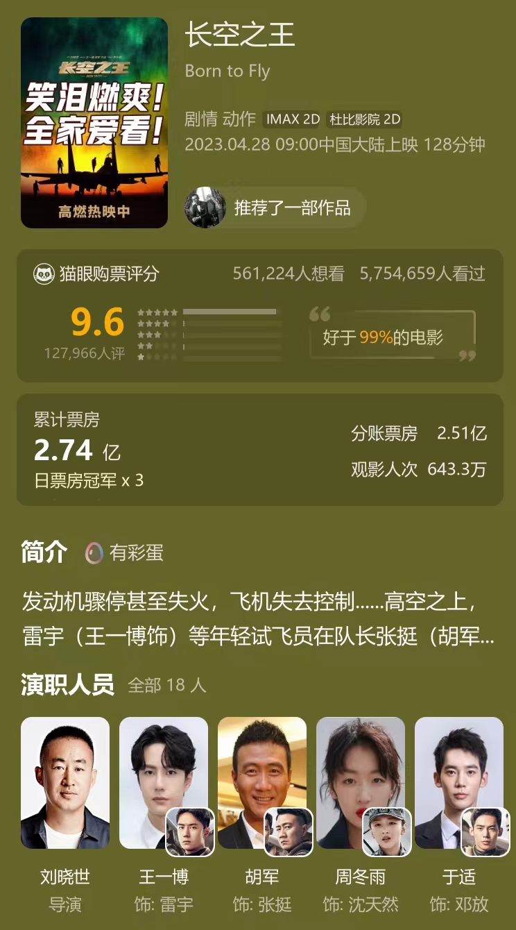 中午尝了一下新白鹿,一家不错的杭州菜。晚上看了一部电影,《长空之王》。实际上本来前天就想看了,周五晚上回来后在融创茂吃了个“等鱼柒·豆花烤鱼”,已经不记得是第几次吃这家了,小朋友似乎挺爱吃的。 完了本来想去看看电影,奈何时间太晚了,只能早早回去休息。